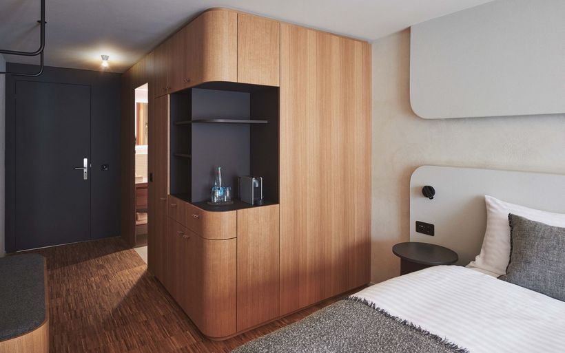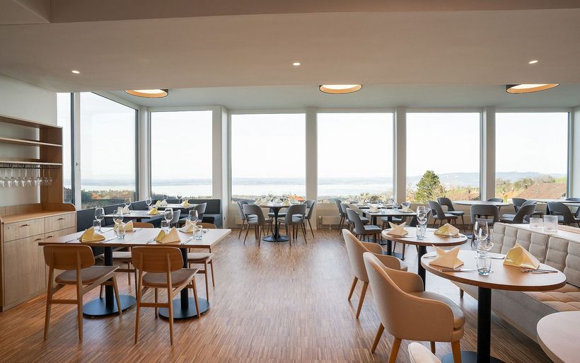 Originelle Vintage-Möbel ergänzen die zeitgenössische Möblierung, und Schwarz-Weiss-Fotografien aus dem Appenzell stimmen den Gast auf Ausflüge und Entdeckungen ein. Alle Räume haben See- oder Kurparkblick und sind mit Boxspringbetten, barrierefreien Regenduschen, USB-Anschlüssen und Nespresso-Kaffeemaschinen ausgerüstet.