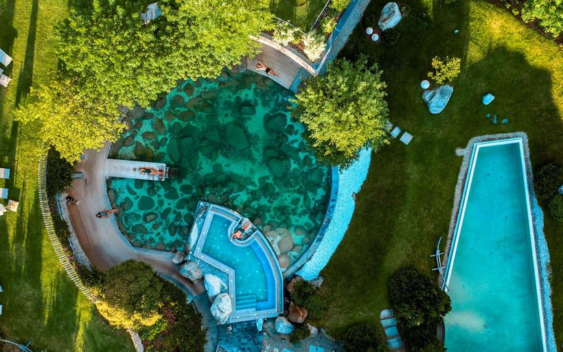 aufkommt. Das «Sonnenbad» ist thematisch der Sonne gewidmet, was sich in dem hellen Bau mit viel Glas und in den Sonnenmandalas zeigt, die in grossen Tafeln von der Decke hängen. Der gläserne Skypool wirkt schliesslich wie das I- Tüpfelchen auf dem Bergresort, wobei der 25 Meter-Infinitypool ebenfalls zu den Highlights des modernen Spa gehört. Inhaberfamilie Berger war nicht nur sichtlich gerührt von der Auszeichnung, sondern auch von der treffenden Begründung.