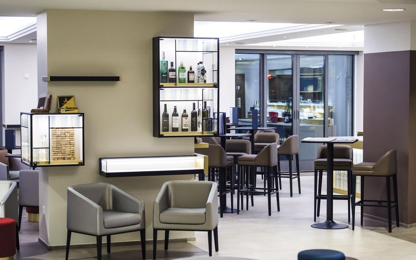 Le nouveau lobby bar & lounge, situé en face de la réception, s’adresse à une clientèle plus branchée et complète l’offre permanente et journalière de restauration. Sur la place de la gare, les autres locaux du rez-de-chaussée ont été loués à l’Office du tourisme et à une sandwicherie.