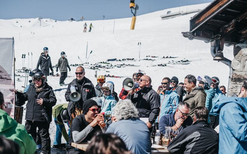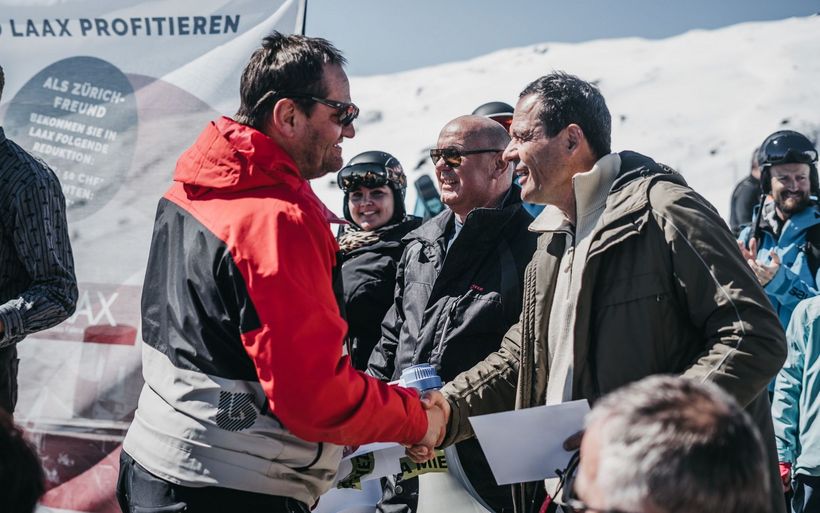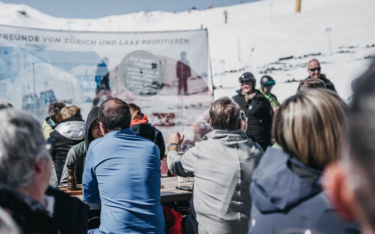Megaphone, Übernachtungsgutscheine und Werbematerial: Bestens ausgerüstet beeindruckten 20 Hoteliers aus Zürich und Laax die Gäste höchstpersönlich mit einer aussergewöhnlichen Aktion im Skigebiet: Die Gruppe besuchte während der Mittagszeit vier gut frequentierte Restaurants in der Destination Laax und verblüffte mehrere hundert Gäste.