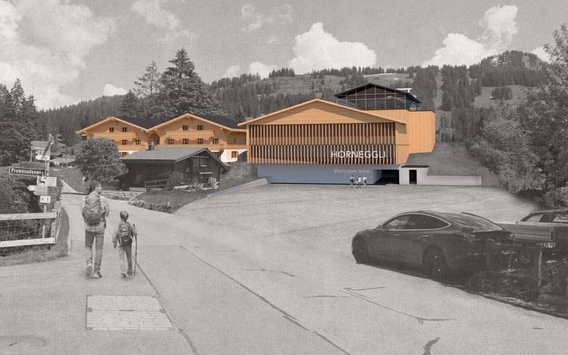 Der grösste Posten der Überbauungsordnung Saanenmöser-Schönried, ist der Neubau der Transportbahn mit Mittelstation von Schönried bis zum Hornbergkessel. Das bestehende Einstiegsportal wird im Tal durch einen modernen Neubau ersetzt und um ein Parkhaus ergänzt. 500 Parkplätze werden geschaffen und entschärfen die angespannte Parkplatzsituation in Schönried.