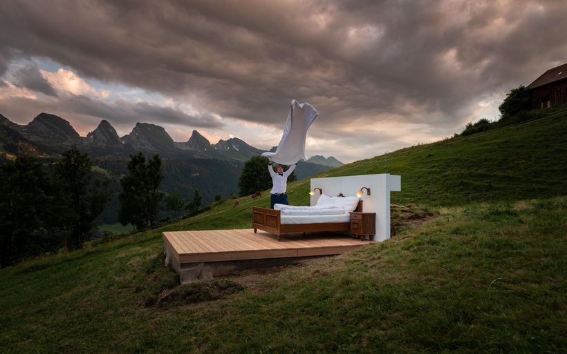 [IMG 2-4]Nach zwei erfolgreichen Sommersaisons und über 4500 Reservationsanfragen haben die St. Galler Konzeptkünstler Frank und Patrik Riklin sowie der Hotelexperte Daniel Charbonnier 2018 im Toggenburg das Projekt «Zero Real Estate» (immobilienbefreites Hotelzimmer) lanciert.
