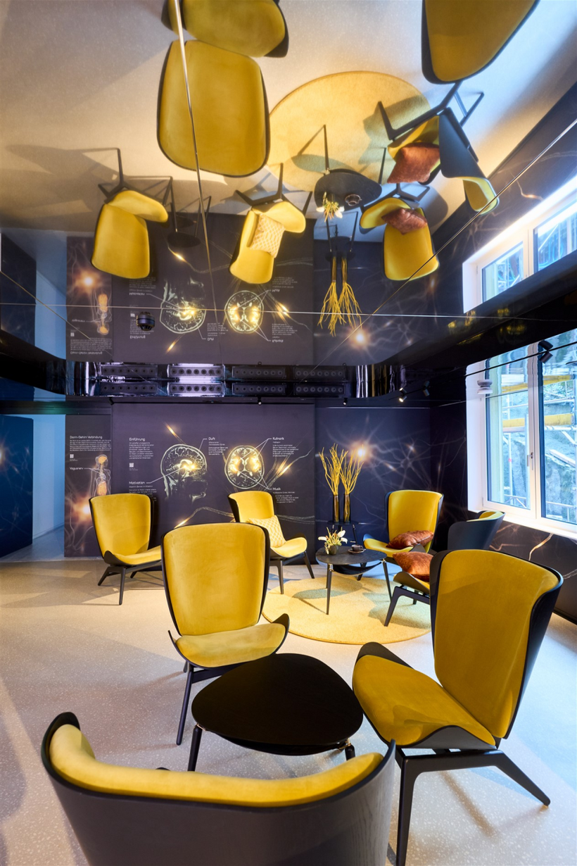 Die Zimmer sind hell und freundlich gestaltet. Jeder Raum hat sein eigenes Thema und reflektiert seine eigene Geschichte. Die Rolle des Gastes soll neu definiert und bereichert werden und jeder Aufenthalt soll ein neues Erlebnis bieten, heisst es in der Mitteilung. Die Signaletik erfolgt über eine jedem Stockwerk zugeteilte, ruhige Farbgebung, um den Gast auf eine Reise in die vernetzte Welt der Neurowissenschaften, der Kulinarik und der Musik mitzunehmen.