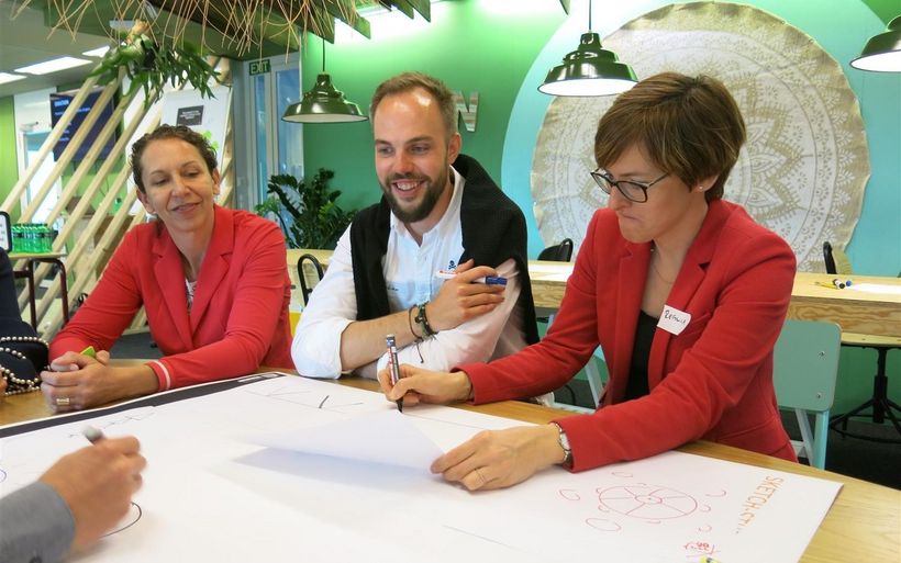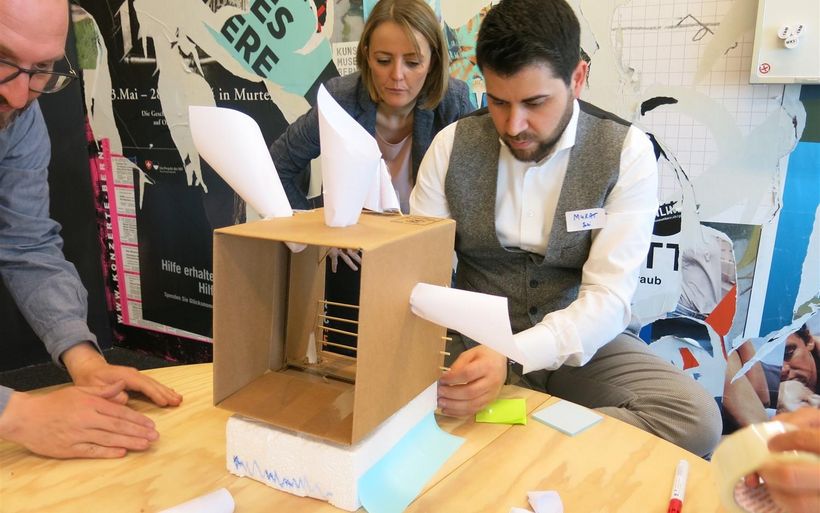 Neue Geschäftsmodelle wie AirBnB, Pop Up Hotels und trendige Brands stellen die Hotellerie auf den Kopf. Die Gästebedürfnisse verändern sich stark und neue Angebote sind gefragt. Was braucht die Branche, um innovative Geschäftsmodelle, Angebote und Dienstleistungen entwickeln zu können? Antwort: Einen «Design Thinking Workshop», bei dem Lösungen erarbeitet werden, wie die Branche «Produkteentwicklung» künftig anpacken kann. Mit Unterstützung von hotelleriesuisse und der Hotelfachschule Thun luden die Workshop-Organisatoren Nicoletta Müller, Müller Innovation, Sales & Marketing GmbH, und Company Factory zu einem Impuls Workshop ein. 25 Hoteliers und Hotelière aus der ganzen Schweiz arbeiteten einen Tag lang mit kreativen Methoden aus dem Innovationsmanagement.