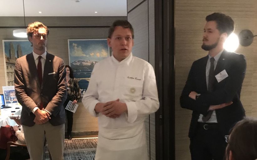 [IMG 2]Kulinarisch verwöhnt wurden die Anwesenden mit einem 6-Gang-Menu von Mattias Roock, Küchenchef des 5-Sterne-Hotels und «Relais & Châteaux»-Mitglieds Castello del Sole in Ascona. Roock kam direkt von der Gault-Millau-Auszeichnung, an der zum «Aufsteiger des Jahres im Tessin» ausgezeichnet wurde.