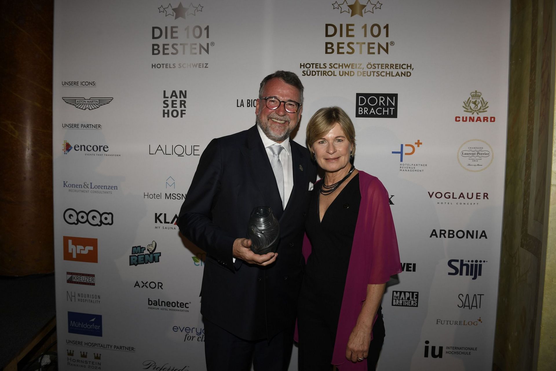 Die Gala versammelte über 300 Gäste im prunkvollen «La Salle de Versailles» des Victoria-Jungfrau Grand Hotels. Neben den beiden Hauptpreisen erhielt das «Bergwelt Grindelwald – Alpine Design Resort» den Titel «Discovery of the Year». Urs Langenegger, CEO Hospitality Visions Lake Lucerne AG, wurde als «101 Icon Hotelier of the Year» geehrt, während Jean-Jacques Gauer den «101 Icon Hotelier of the World – Lifetime Achievement Award» entgegennahm.