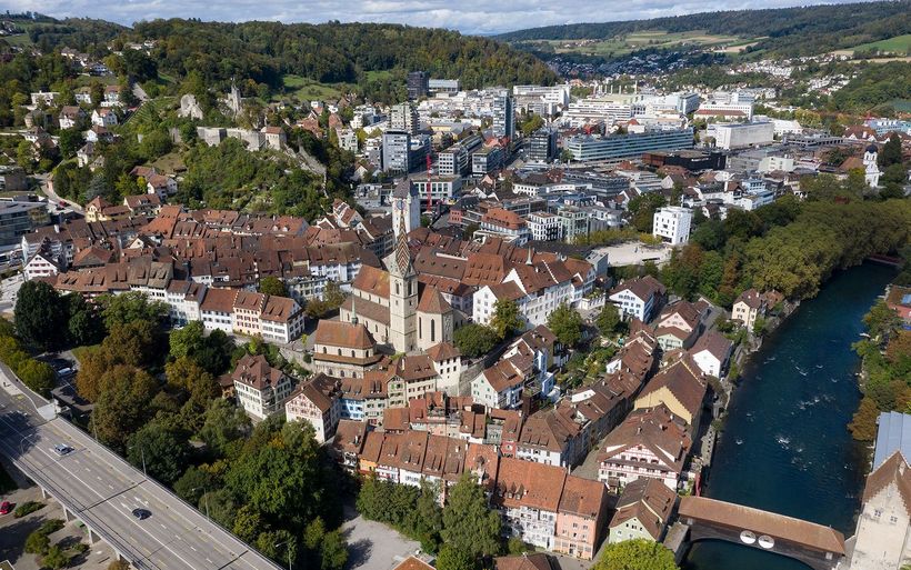 Die Altstadt von Baden ist seit jeher ein Verkehrsknotenpunkt. Was einst ein Standortvorteil war, drehte der steigende Autoverkehr ins Gegenteil um: Mit täglich 50'000 Fahrten ist der Schulhausplatz am Rande der Altstadt heute eine der dichtest befahrenen Kreuzungen in der Schweiz.